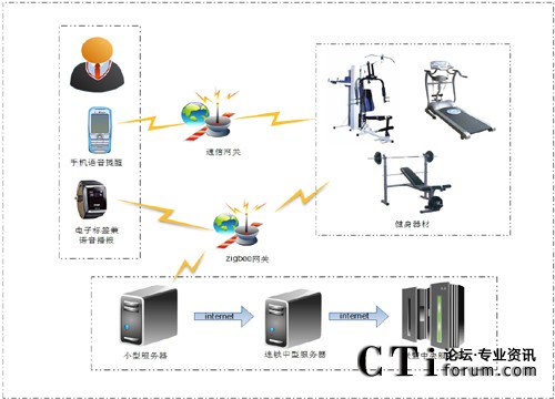 基于物聯(lián)網(wǎng)的綜合信息管理健身系統(tǒng),以下簡稱物聯(lián)網(wǎng)健身系統(tǒng)----IOT Fitness system(IOTFS),本系統(tǒng)是將物聯(lián)網(wǎng)技術(shù)(ZIGBEE、GPRS等傳輸方式)以及語音合成技術(shù)(TTS)的應(yīng)用集成于一體。技術(shù)方案主要利用無線通訊技術(shù)、射頻技術(shù)、電子技術(shù)、計(jì)算機(jī)技術(shù)、信息網(wǎng)絡(luò)技術(shù)、傳感技術(shù)等高科技術(shù)的設(shè)備和軟件所組成,以構(gòu)建完善的客戶健身服務(wù)系統(tǒng)和健身房運(yùn)營系統(tǒng)相結(jié)合的統(tǒng)一的信息管理健身系統(tǒng)。