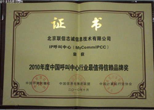 在本次評(píng)選中,北京聯(lián)信志誠信息技術(shù)有限公司(簡(jiǎn)稱MyComm公司),其核心產(chǎn)品MyCommIPCC獨(dú)享 2010年度中國呼叫中心行業(yè)最值得信賴品牌獎(jiǎng)。