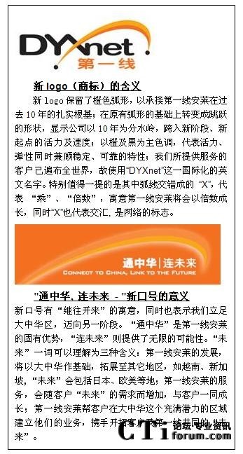 CTI論壇(ctiforum)08月20日消息: 知名網(wǎng)絡服務商第一線安萊,十年間憑借經(jīng)驗豐富的團隊,靈活的服務、可靠的網(wǎng)絡系統(tǒng)等,遙遙領(lǐng)先于眾多競爭對手,傲然屹立于大中華地區(qū)。目前,正值第一線安萊十周年慶之際,全新的企業(yè)商標和“通中華.連未來”的新口號也向大眾展示。公司提出將幫助客戶實現(xiàn)“立足大中華,拓展全世界”的愿景。