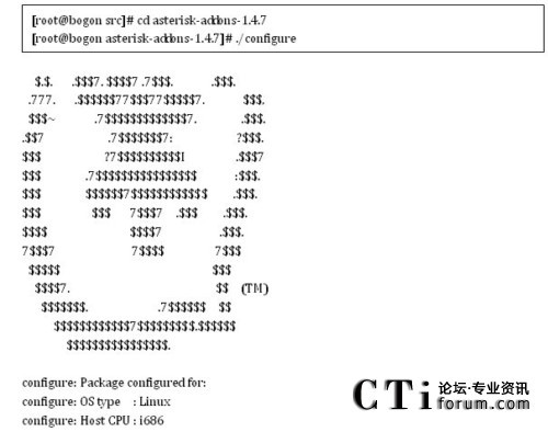 輸入 cd /usr/src/asterisk-xxxx //xxxx代表對應的版本號./configure./configure運行完正確的輸出是: