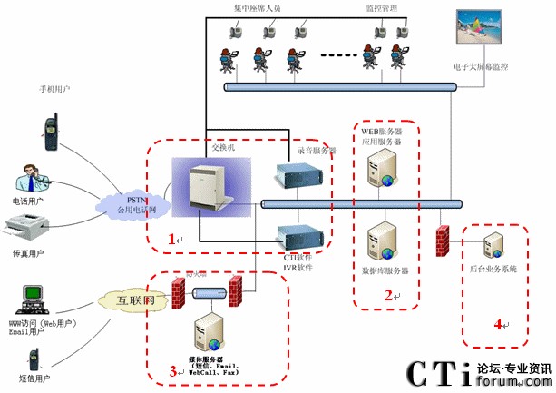 基于PBX交換機(jī)實(shí)現(xiàn)語(yǔ)音交換和ACD排隊(duì)、基于板卡實(shí)現(xiàn)語(yǔ)音資源、基于CTI中間件實(shí)現(xiàn)CallCenter功能、基于先進(jìn)技術(shù)實(shí)現(xiàn)增強(qiáng)功能,共同搭建呼叫中心平臺(tái)。