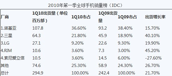 另外,福布斯雜志網(wǎng)站指出,摩托羅拉一季度僅有850萬(wàn)部的手機(jī)出貨量顯示,他們已經(jīng)被蘋(píng)果公司(一季度出貨iPhone 875萬(wàn)部)超越。也就是說(shuō),現(xiàn)在蘋(píng)果已經(jīng)成為美國(guó)第一大手機(jī)制造商。考慮到蘋(píng)果實(shí)際上只有一款手機(jī)產(chǎn)品,這一事實(shí)確實(shí)相當(dāng)驚人。如果iPhone繼續(xù)以目前的高增速發(fā)展下去,也許過(guò)不了多久它就將替代索尼愛(ài)立信,同樣進(jìn)入全球前五大手機(jī)廠商的行列。
