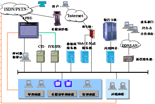 銀行客戶服務中心采用開放的和可擴展的體系結(jié)構(gòu),通過高度靈活的系統(tǒng)平臺,為不同訪問方式的用戶提供多種形式的服務。