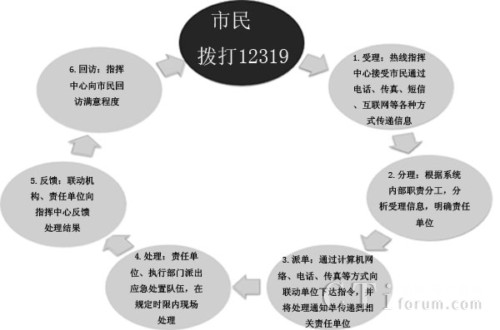 12319服務(wù)熱線系統(tǒng)具體辦事流程,劃分為以下七個階段:問題反映階段、受理階段、分理階段、任務(wù)派遣階段、處理階段、反饋階段和回訪評價階段。