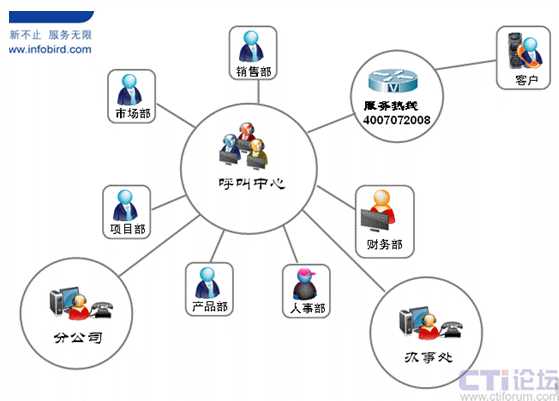 呼叫中心可以與企業(yè)的財務(wù)系統(tǒng)、OA系統(tǒng)、ERP系統(tǒng)、CRM系統(tǒng)等進行整合,幫助企業(yè)輕松實現(xiàn)整個業(yè)務(wù)流程的管理、企業(yè)內(nèi)外溝通過程的管理。每個流程、每個節(jié)點都是可以被量化,可以被審查和糾正的。呼叫中心部門已經(jīng)不再局限于對客戶的服務(wù)提供,已經(jīng)完全成長為一個提升企業(yè)效率和運營能力的服務(wù)管理部門。通過下表我們看到呼叫中心在組織中的職能架構(gòu)發(fā)生變化,已經(jīng)完全成為與客戶溝通的最重要的部門之一。