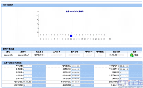 客戶撥打企業(yè)對外聯(lián)系號碼4007072008,在聽到語音提示“歡迎致電。。。。。。,技術(shù)支持按3。。。。。。”的時候,既可以按3,將電話分配到項目部的最適合這個工作的人的手機上來完成項目支持工作,也可以直接撥8123將電話指定分配到小河的手機上,讓工程師小河來完成項目支持工作。這樣一來,不管公司的人員在哪里,客戶只要撥打公司的總機號碼,就可以找到人員為其提供服務(wù),同時,所有的通話,都在系統(tǒng)的管理和控制之內(nèi)。下圖是對應(yīng)的呼叫監(jiān)控的圖表,可以實時看到員工的工作狀態(tài):