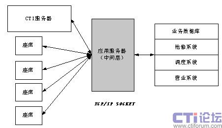 數(shù)據(jù)接口采用三層C/S結(jié)構(gòu),通過(guò)構(gòu)建功能強(qiáng)大的應(yīng)用服務(wù)器,把呼叫中心的數(shù)據(jù)流與燃?xì)夤究蛻粝到y(tǒng)、營(yíng)業(yè)系統(tǒng)、搶修系統(tǒng)和燃?xì)庹{(diào)度系統(tǒng)結(jié)合起來(lái),充分利用了已有系統(tǒng)標(biāo)準(zhǔn)的數(shù)據(jù)接口,實(shí)現(xiàn)對(duì)后臺(tái)數(shù)據(jù)庫(kù)的訪問(wèn)。如圖2