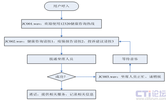 流程圖表示了正常工作期間的流程,實際技術(shù)流程會因為是否在工作時間、坐席人員是否繁忙等多種因素考慮,設置自動語音內(nèi)容、語音留言等功能。