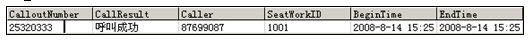 備下次呼叫參考, 同時記錄了工號及呼出主叫, 當該客戶(25320333)呼入時, CTI將自動導航該客戶(被叫號碼)到對應(yīng)的業(yè)務(wù)員工號(1001)和主叫號碼(87699087),