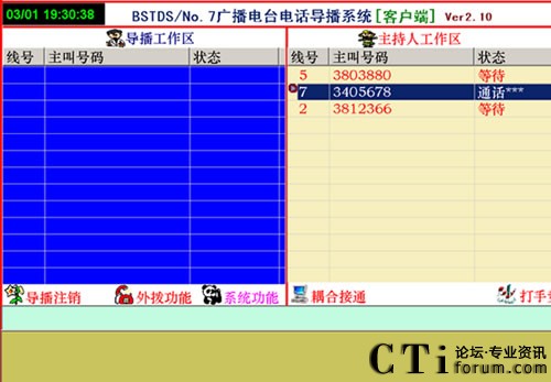 1、直播節(jié)目開播時,參與者打進(jìn)電話,由導(dǎo)播把參與電話導(dǎo)入直播區(qū),這時直播區(qū)顯示參與者的電話號碼,主持人可以任意的選擇參與者進(jìn)行通話或掛機(jī)。