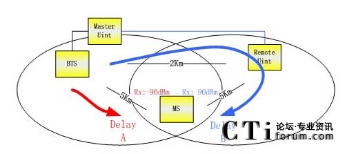 需要考慮GRRU站時(shí)延的引入對(duì)系統(tǒng)造成的影響?赡艽嬖诟采w區(qū)與施主扇區(qū)覆蓋區(qū)重疊的可能,如果兩重疊信號(hào)時(shí)延差小于4TA則不會(huì)造成任何問題,這是GSM規(guī)范規(guī)定的。當(dāng)兩信號(hào)時(shí)延差大于4TA且信號(hào)強(qiáng)度相當(dāng)(差值小于10dB)則將導(dǎo)致手機(jī)掉話;因此,這時(shí)需要考慮選取背向光纖直放站覆蓋區(qū)的施主扇區(qū),這樣基站重疊區(qū)和直放站重疊區(qū)就不會(huì)產(chǎn)生多徑引起的掉話了,而是兩個(gè)扇區(qū)信號(hào)的切換。