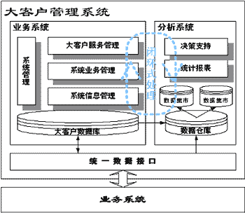 HollyAnalyzer是建立在大客戶信息平臺(tái)基礎(chǔ)上的針對(duì)業(yè)務(wù)主題、面向決策支持的系統(tǒng)。將數(shù)據(jù)倉庫的相關(guān)技術(shù)引入,利用數(shù)據(jù)分析系統(tǒng),從基于客戶數(shù)據(jù)及企業(yè)業(yè)務(wù)活動(dòng)的歷史記錄中提煉出有用的信息產(chǎn)生標(biāo)準(zhǔn)的查詢報(bào)告,進(jìn)行大客戶分析和市場(chǎng)營銷的輔助決策支持。分析主題主要針對(duì)客戶、競(jìng)爭(zhēng)對(duì)手和營業(yè)及收入進(jìn)行分析,這些數(shù)據(jù)是企業(yè)非常關(guān)心的信息,有助于企業(yè)借助積累的歷史數(shù)據(jù),對(duì)其業(yè)務(wù)運(yùn)營狀況及營銷活動(dòng)成效做出正確的評(píng)價(jià),了解客戶行為及其趨向。