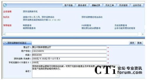 要實(shí)現(xiàn)此目的,IT支撐系統(tǒng)將高技能座席的處理能力“推送”給普通座席。第一章我們論述了IT支撐系統(tǒng)可以以客戶應(yīng)用場(chǎng)景為核心,通過(guò)分析流程分析客戶訴求找到客戶真正的需求。可以將這一思路推演下去,針對(duì)客戶的某個(gè)具體需求,呼叫中心制定統(tǒng)一的解決方案。我們以下面的“預(yù)存話費(fèi)換手機(jī)”為案例。通過(guò)先期溝通,座席已經(jīng)知曉這是客戶的真正訴求,只需要選擇好“預(yù)存話費(fèi)換手機(jī)”的業(yè)務(wù)類型,IT支撐系統(tǒng)會(huì)顯示出集成在一個(gè)頁(yè)面中的全套解決方案:處理此訴求可能用到知識(shí)庫(kù)中的三個(gè)知識(shí)點(diǎn);需要查詢的客戶信息,經(jīng)常給客戶發(fā)送的短信內(nèi)容;處理此訴求可能執(zhí)行的登記任務(wù),……