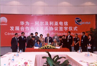 近日,阿爾及利亞電信董事長兼總裁謝第赫(CHETTIH)先生與中國華為董事長孫亞芳女士分別代表雙方公司,簽署了建立全面合作戰(zhàn)略伙伴關(guān)系的協(xié)議。雙方表示,將在CDMA、GSM、交換接入、傳輸和數(shù)據(jù)等各領(lǐng)域開展更全面深入的合作,同時強調(diào)了在技術(shù)交流、培訓及業(yè)務方面的交流與合作。