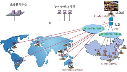 中國遠(yuǎn)洋(集團(tuán))公司全球會(huì)議電視系統(tǒng)覆蓋全國13個(gè)分部和全球8個(gè)分公司,系統(tǒng)主會(huì)場在中遠(yuǎn)集團(tuán)公司總部。系統(tǒng)采用ISDN、E1、IP混合組網(wǎng),使用了一套ViewPoint 8620視訊交換平臺、20套ViewPoint8020plus視訊終端和3套Openeye桌面終端,實(shí)現(xiàn)了中遠(yuǎn)(集團(tuán))公司和全球所有分支機(jī)構(gòu)之間的遠(yuǎn)程會(huì)議和業(yè)務(wù)培訓(xùn)。