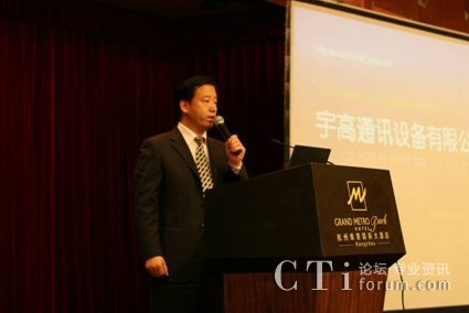 圖:宇高通訊設(shè)備有限公司中國區(qū)業(yè)務(wù)拓展總監(jiān)李濤闡述與華為的共贏合作案例以及宇高的產(chǎn)品和解決方案