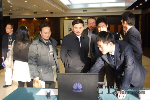 圖:楊學山部長(中間)等人視察華為的數(shù)字化城市管理信息系統(tǒng)