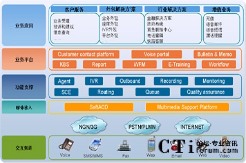 華為多媒體聯(lián)絡(luò)中心解決方案標(biāo)準(zhǔn)版采用的是基于華為NGN架構(gòu)的下一代多媒體接入設(shè)備UAP3300,寬窄帶一體化設(shè)計(jì),可接入PSTN/PLMN、NGN/3G網(wǎng)絡(luò),符合長(zhǎng)期演進(jìn)要求。單臺(tái)可支持240座席,在6U的高度內(nèi)內(nèi)置寬窄帶中繼接入和錄音、放音、傳真等媒體資源處理能力,無需外置媒體服務(wù)器和中繼網(wǎng)關(guān),并支持TTS和ASR功能。