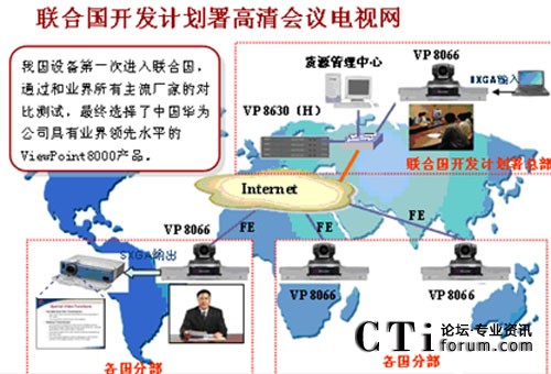 聯(lián)合國(guó)開(kāi)發(fā)計(jì)劃署采用了華為ViewPoint® 8000綜合視訊系統(tǒng),視頻會(huì)議采用業(yè)界最新的H.264視頻編碼技術(shù),節(jié)省了線路帶寬資源,同時(shí)獲得了清晰、流暢的圖像;該視訊會(huì)議系統(tǒng)同時(shí)融合了IP語(yǔ)音系統(tǒng),擴(kuò)展了視頻會(huì)議覆蓋的范圍,實(shí)現(xiàn)了視頻會(huì)議、電話會(huì)議和電視電話混合會(huì)議;視訊會(huì)議系統(tǒng)建成后,以清晰的聲音、圖像和通過(guò)H.239雙流實(shí)現(xiàn)的PC桌面真實(shí)還原,實(shí)現(xiàn)了聯(lián)合國(guó)開(kāi)發(fā)計(jì)劃署遠(yuǎn)程會(huì)議、協(xié)同審批文件等。
