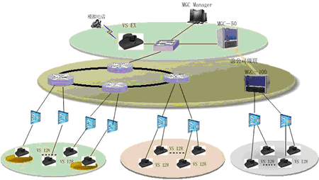 一般來說,在省公司同時(shí)參與會(huì)議的人數(shù)較多,考慮配置比較大的系統(tǒng),由某一領(lǐng)導(dǎo)召集一些相關(guān)成員在此開會(huì);在地市公司同時(shí)參與會(huì)議的人數(shù)較少,只是一些主要領(lǐng)導(dǎo)參加會(huì)議,考慮配置比較小的系統(tǒng);同時(shí),為了實(shí)現(xiàn)終端之間管理和傳送音頻、視頻和數(shù)據(jù),需要MCU來協(xié)調(diào)終端的工作,并與上級(jí)MCU相級(jí)聯(lián),擴(kuò)大會(huì)議的規(guī)模。另外,可以增加一套T.120服務(wù)器,該系統(tǒng)是利用多媒體技術(shù)幫助使用者對(duì)工作中的各種信息進(jìn)行處理,如共享數(shù)據(jù)、共享應(yīng)用程序、實(shí)現(xiàn)文件的雙向傳輸?shù),從而?gòu)造出一個(gè)多人共享的工作空間。以及增加一套VOD系統(tǒng),它集視頻采集、點(diǎn)播、廣播于一體,這樣就可以將視頻會(huì)議的內(nèi)容實(shí)時(shí)的錄制到本地,也可將一些培訓(xùn)資料放在視頻點(diǎn)播里,便于對(duì)貴公司員工進(jìn)行培訓(xùn),還能通過視頻廣播的功能,讓使用PC機(jī)的人員不在會(huì)議室,便可以通過瀏覽器實(shí)時(shí)的看到和聽到正在召開的會(huì)議。
