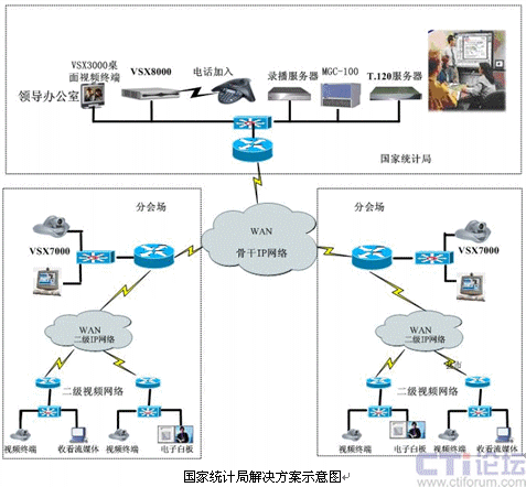 為了貫徹國務(wù)院對政府系統(tǒng)信息化建設(shè)的要求,徹底實現(xiàn)“政務(wù)辦公及行業(yè)管理信息服務(wù)的電子化、網(wǎng)絡(luò)化”的行政管理體制要求,更充分利用現(xiàn)有的網(wǎng)絡(luò)資源,提高自動化管理水平,統(tǒng)計局決定開展中國統(tǒng)計局信息化建設(shè)視頻會議工程建設(shè)。該工程采用H.323/SIP協(xié)議,構(gòu)建于統(tǒng)計局全國骨干IP專用網(wǎng)絡(luò)之上,可實現(xiàn)企業(yè)內(nèi)的實時交談、召開會議及信息共享等。