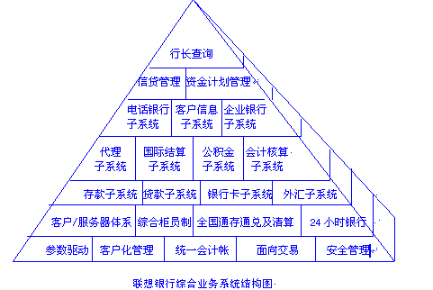 聯(lián)想銀行綜合業(yè)務(wù)系統(tǒng)是聯(lián)想集成系統(tǒng)有限公司為現(xiàn)代銀行設(shè)計(jì)的、