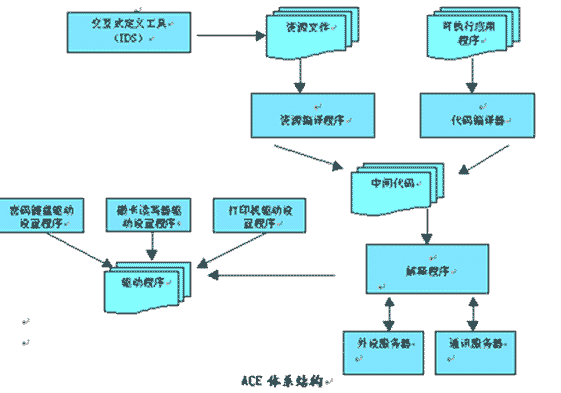 ACE平臺(tái)主要由ACE解釋器、編譯器、交互式開發(fā)工具(IDS)、LCG及配置工具等部分組成。