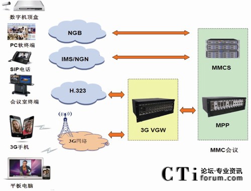 鑒于傳統(tǒng)視頻會議只能在固定地點(diǎn)、專用線路,通過專用設(shè)備召開語音和視頻會議的局限性。3G移動視頻會議解決方案實現(xiàn)了將會議拓展到整個互聯(lián)網(wǎng)和移動網(wǎng)絡(luò),用戶隨時隨地可以使用3G手機(jī)和PC,通過互聯(lián)網(wǎng)、移動網(wǎng)絡(luò)即可便捷地接入到現(xiàn)有會議系統(tǒng)中,真正實現(xiàn)跨越地域、空間的全方位會議。