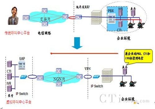 對于中小用戶來說,傳統(tǒng)呼叫中心的投入過大且不易轉(zhuǎn)移,而通過CCOD,中小用戶可以在較小的投資下享有與大企業(yè)一樣的呼叫中心服務,同時由于CCOD本身虛擬的特性,也能滿足中小企業(yè)工作地點時常變遷的需求,可以方便的轉(zhuǎn)移。