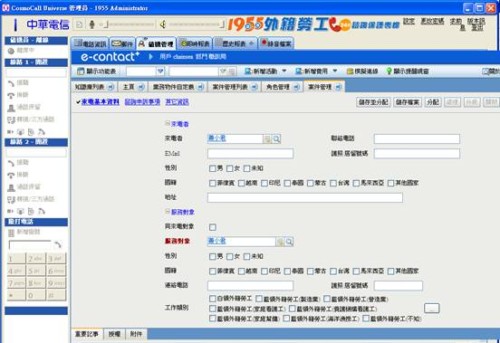 與其說(shuō)是外籍勞工保護(hù)專案,其實(shí)也是雇主申訴專線,本專案須整合中華電信代理的COSMO軟體電話功能,及導(dǎo)入服務(wù)及客服模組,當(dāng)電話來(lái)電時(shí),客服員案下軟體電話接聽(tīng)時(shí),同時(shí)利用來(lái)電電話搜尋并帶入當(dāng)通來(lái)電者資料及歷史申訴案件至畫(huà)面上,如果需要建立申訴案件,也可以使用服務(wù)請(qǐng)求將申訴案件儲(chǔ)存于系統(tǒng)中,或是需要咨詢答覆時(shí),也只要將關(guān)鍵字輸入至知識(shí)庫(kù)的查詢方案中,在短時(shí)間找到答案馬上做回覆,讓作業(yè)更有效率。本專案角色分為接線服務(wù)員、業(yè)務(wù)督導(dǎo)、行政管理及全省25個(gè)縣市政府機(jī)關(guān)人員。接線服務(wù)員是第一線的電話服務(wù)窗口,接電話同時(shí)須視電話內(nèi)容新增服務(wù)請(qǐng)求,并做判斷是否可以即時(shí)線上結(jié)案,如果不行結(jié)案,則可使用該服務(wù)請(qǐng)求(派案單)下新增任務(wù),將任務(wù)分配至全省25個(gè)縣市政府機(jī)關(guān)人員,各縣市人員收到任務(wù)(回覆單),也可以活動(dòng)(紀(jì)錄單)線上回覆派案處理狀況,并做結(jié)案,系統(tǒng)可依照設(shè)定的審核流程請(qǐng)求同意結(jié)案。
