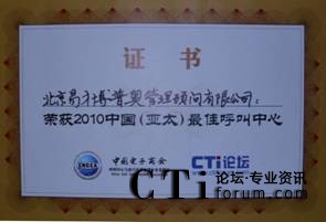 CTI論壇(ctiforum)10月14日消息(記者 潘婷婷):2010年9月28日,由中國(guó)電子商會(huì)呼叫中心與客戶關(guān)系管理專(zhuān)業(yè)委員會(huì)(CNCCA)主辦,國(guó)家工業(yè)和信息化部支持,CTI論壇承辦的2010中國(guó)呼叫中心產(chǎn)業(yè)峰會(huì)暨中國(guó)(亞太)最佳呼叫中心頒獎(jiǎng)典禮在北京成功召開(kāi)。北京易才博普奧管理顧問(wèn)有限公司通過(guò)行業(yè)推薦、評(píng)審專(zhuān)家小組的電話暗訪、入戶調(diào)研等多個(gè)環(huán)節(jié)的嚴(yán)格審核,憑借在人力資源外包服務(wù)領(lǐng)域的卓越表現(xiàn)從眾多企業(yè)中脫穎而出,并最終摘取“2010中國(guó)(亞太)最佳呼叫中心”桂冠。