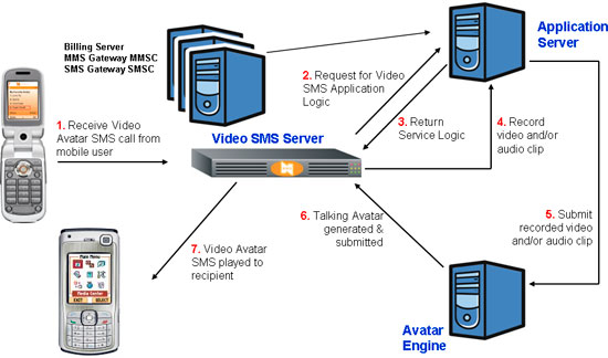 化身引擎 — 化身引擎的一個關(guān)鍵功能是接收來自應(yīng)用服務(wù)器的音頻片斷,并采用復(fù)雜的算法對語音消息和化身圖像的唇動進行同步,處理后的結(jié)果就是一段“正在說話”的化身視頻。處理文件被發(fā)送回應(yīng)用服務(wù)器,在視頻SMS服務(wù)器存取這些視頻文件進行播放之前,這些文件將被存放在應(yīng)用服務(wù)器上。