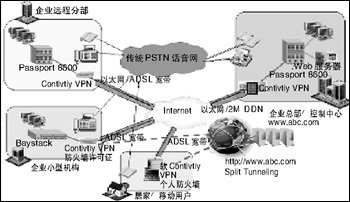 2700/1700)同樣獲得固定的合法IP地址,這樣兩點(diǎn)間可以方便地通過IPSEC VPN建立起安全隧道,有的小型分支機(jī)構(gòu)可能租用ADSL/xDSL鏈路,此時Contivity(Contivity