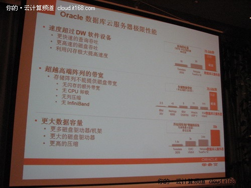 喻思成在介紹甲骨文在云計(jì)算產(chǎn)品的時(shí)候毫不掩飾對Oracle數(shù)據(jù)庫云服務(wù)器和Oracle中間件云服務(wù)器的贊譽(yù)。他說,甲骨文將這兩款產(chǎn)品稱之為“經(jīng)過預(yù)調(diào)測的系統(tǒng)”。它們均由硬件和軟件組成,硬件和軟件能以一種優(yōu)化的方式協(xié)調(diào)一致地運(yùn)行,并以一種預(yù)集成的工作狀態(tài)提供給客戶,因此具有極高的性能和效率,是數(shù)據(jù)庫的理想目標(biāo)平臺,也是在中間層合并幾十或數(shù)百個(gè)應(yīng)用的理想目標(biāo)平臺。由于它們都是由甲骨文預(yù)集成和預(yù)配置的,因此也簡化了部署,能減少總的硬件量并降低環(huán)境復(fù)雜性,因此對客戶而言,其總體擁有成本更低。