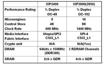 Intel XP-2XXX系列網(wǎng)絡(luò)處理器大致包含:IXP-2400、IXP-2800及IXP-2850,請參考表一的性能差異。除此之外,Intel還考慮比照了IXP-42X系列的做法,高度整合MACs等功能模塊,建造優(yōu)異的性價比產(chǎn)品,使這一系列處理器的應用更普及化。