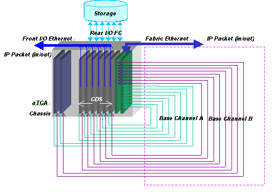內(nèi)部互聯(lián)架構(gòu)在aTCA特有的Base Channel 和Fabric Channel之上,最大實(shí)現(xiàn)內(nèi)部2.4T數(shù)據(jù)交換