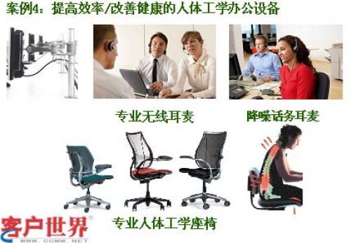 還有一個(gè)話題是健康座席怎么去配備,我主張七個(gè)元素,這個(gè)是在英國學(xué)到的,英國的話務(wù)員他們每個(gè)人都干到40歲,他們可以從20歲-40歲還沒有厭倦這個(gè)行業(yè)和崗位,他們認(rèn)為這個(gè)工作不是天天疲于應(yīng)付,或者說強(qiáng)度非常高而產(chǎn)生很大壓力的工作,他們很熱愛自己的工作,你看他們有很舒服的座椅,還有腳墊,女孩子如果注意保養(yǎng)自己身材的話,要經(jīng)常有機(jī)會站起來,保持一種站立狀態(tài)去工作,包括有一些電扇、健康的鼠標(biāo)、鍵盤、降噪耳機(jī),等等,包括視頻顯示液晶屏都可以讓客服代表享受輕松的工作感受,不會因?yàn)槠诙a(chǎn)生厭倦,這種厭倦來的非常晚,當(dāng)一個(gè)員工在一個(gè)新的崗位工作超過一年以后,在他的厭倦感來臨之前我們已經(jīng)幫他調(diào)整好這種心態(tài)和適應(yīng)力,可能他的厭倦感會一直不來,這樣的話我們就可以很長時(shí)間保有一個(gè)有經(jīng)驗(yàn)的優(yōu)秀客服代表,為公司節(jié)省很多成本,這樣的工作是非常舒服的。