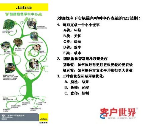 我之前在講綠色呼叫中心的時(shí)候,也是說通過這些觀察和一些提煉發(fā)現(xiàn)我們在真實(shí)生活中,如果從一些新的角度去看待我們現(xiàn)在的工作,其實(shí)就會發(fā)現(xiàn)環(huán)境可以在眾多的競爭對手中脫胎換骨成為跟別的呼叫中心不一樣的核心競爭力。