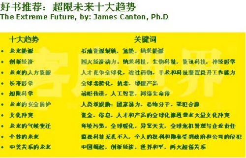 劉總(臺灣遠(yuǎn)東集團(tuán))很清楚,他是從臺灣過來的,臺灣有很多好書,我個(gè)人最喜歡是臺灣的誠品書店,每次去臺北都會去逛那個(gè)誠品書店,有很多新書,其中有一本關(guān)于未來十大趨勢的書,比如你會看到一些很新的詞匯,能源,長壽的醫(yī)學(xué),人如何活到120歲,這個(gè)在我們的年代可能就已經(jīng)實(shí)現(xiàn)了,包括你會看未來的氣候會如何變遷,然后我們未來中美關(guān)系是什么樣子的。這里面的討論對于我們來講,雖然跟我們個(gè)人生活關(guān)系并沒有巨大的影響,但是我們會想到一些我們可以比別人做得更快的、一些創(chuàng)新的東西。