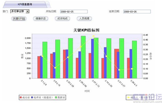 (2)分析部分以效能分析為主,主要以圖表的形式,可以展示以天、周、月、季、半年、年為單位的個人或小組的各時段效能分析(如圖二所示)。用真實可視的數(shù)據(jù)來代替主觀判斷與評價,實現(xiàn)呼叫中心的數(shù)字化管理及科學(xué)化管理,提高工作效率。