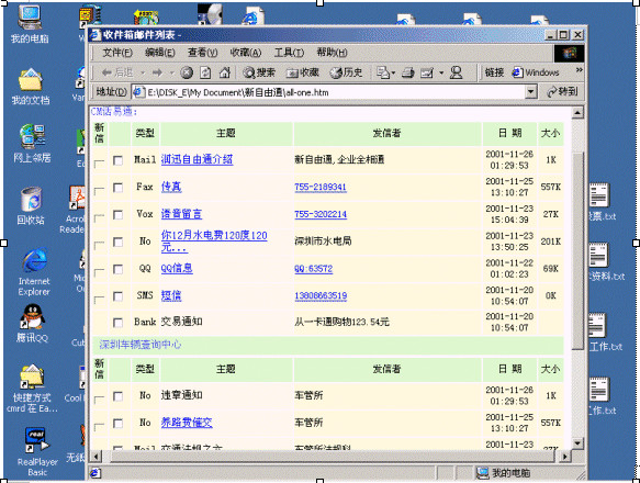 傳統(tǒng)郵件系統(tǒng)作為信息交換的手段在PC后的互聯(lián)網(wǎng)絡(luò)時(shí)代廣為運(yùn)用,但是,郵件系統(tǒng)一個(gè)大的缺點(diǎn)是離不開(kāi)電腦。CTI技術(shù)技術(shù)通過(guò)傳統(tǒng)的電話網(wǎng)絡(luò)傳遞語(yǔ)音信息。電話網(wǎng)具有廣泛普及,人人使用這一特點(diǎn),這兩大技術(shù)的發(fā)展促使兩大技術(shù)的融合,那就是隨時(shí)隨地(anytime and anywhere)人們都可以通過(guò)電話,電腦使用郵件,訪問(wèn)郵件。