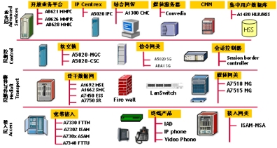 上海貝爾阿爾卡特提供完整的NGN解決方案,以軟交換為核心,綜合大容量綜合接入網(wǎng)關(guān),與PSTN互通的中繼網(wǎng)關(guān)TGW,適合寬帶用戶(以太網(wǎng),DSL或者HFC)接入的IAD或者IP電話,多媒體通信IP視頻終端等設備。方案提供了覆蓋所有接入方式的綜合業(yè)務,既考慮了網(wǎng)絡的繼承,也滿足網(wǎng)絡演進和發(fā)展的需要。