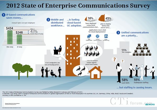 “此項(xiàng)研究的發(fā)現(xiàn)證實(shí)了我們從客戶那里得來的反饋:基于IP的統(tǒng)一通信不僅提高了終端用戶的生產(chǎn)效率,還節(jié)約了公司成本,”西門子企業(yè)通信北美區(qū)總裁兼全球市場(chǎng)總監(jiān)Chris Hummel說,“企業(yè)通信正處于從PBX到IP以及從客戶機(jī)房到云部署的過渡時(shí)期。西門子企業(yè)通信致力于為我們的客戶提供靈活開放的企業(yè)通信解決方案,以適應(yīng)其業(yè)務(wù)需要。這有助于降低IT技術(shù)的復(fù)雜性,更好地支持企業(yè)員工的移動(dòng)性需求,并幫助企業(yè)完成這種轉(zhuǎn)變。”
