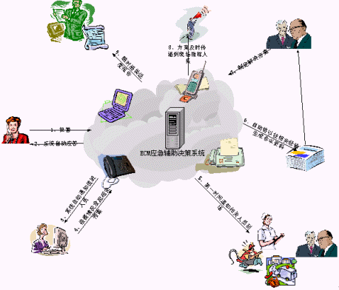 處理"非典"事務(wù)需要多個部門共同完成。應(yīng)急指揮系統(tǒng)會把相關(guān)信息根據(jù)置好的流程自動通過語音電話、短信和傳真發(fā)送到上級領(lǐng)導(dǎo)和相關(guān)的職能部門,以便及時得到來自各方面的支持反饋,使得處理突發(fā)事件時做到緊張有序。