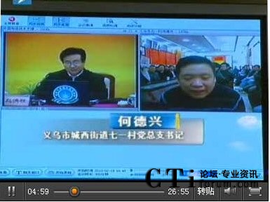 CTI論壇(ctiforum)2月25日消息(記者 潘婷):新春佳節(jié),浙江省委書記趙洪祝通過中國電信遠程教育網(wǎng)絡(luò)視頻與部分村支部書記、村官代表進行了遠程互動,探討農(nóng)村管理的同時向基層村干部拜年、慰問。