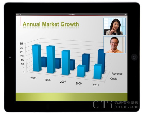 現(xiàn)在,在視頻通信需求增長、勞動(dòng)力越來越偏遠(yuǎn)以及技術(shù)進(jìn)步的推動(dòng)下,移動(dòng)視頻會(huì)議正在顯著增長。今天的企業(yè)往往在地域上越來越分散,越來越虛擬,全球遠(yuǎn)程辦公人員已超過10億。同時(shí),技術(shù)的進(jìn)步也推動(dòng)了視頻移動(dòng)社會(huì),包括配有攝像頭的移動(dòng)平板電腦和智能手機(jī)的普及;3G、4G和Wi-Fi網(wǎng)絡(luò)的出現(xiàn);以及云服務(wù)。事實(shí)上,Gartner仍然看好多媒體平板電腦市場帶來的機(jī)會(huì),據(jù)他們預(yù)測到2015年平板電腦將售出3.2億部,到年底,累計(jì)銷售將超過9億部。到2015年,采用視頻聊天的人數(shù)預(yù)計(jì)將增長14倍,超過1.4億人。