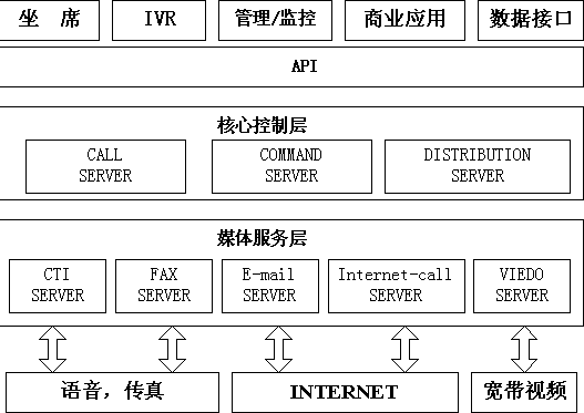 核心控制層用于對來自不同媒介的客戶進行識別和路由,幫助企業(yè)最大限度地對每個連接加以利用,實現(xiàn)對所有客戶的全面交互管理,能夠對進入呼叫中心的語音呼叫、電子郵件、Web聯(lián)系和傳真通信等所有類型的多媒體交互進行路由、通告和告警?梢詫Σ煌挠脩、不同的聯(lián)系方式進行統(tǒng)一調度和個性化處理,并集中進行管理、定制和用戶來訪信息的記錄。