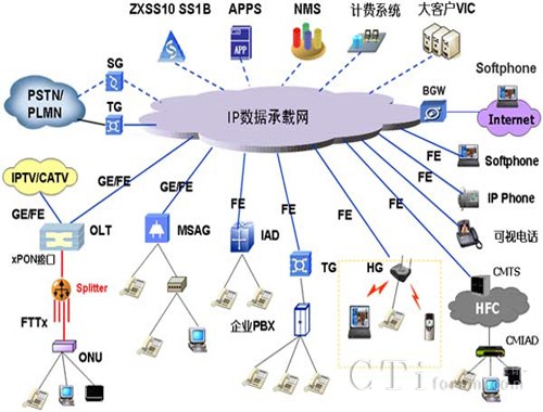 - 采取IP分組交換方式,方便地支持視頻終端、各類(lèi)新型智能終端的接入,在同一網(wǎng)絡(luò)上方便地為用戶(hù)提供豐富多彩的多媒體業(yè)務(wù)服務(wù),避免了傳統(tǒng)的因提供單一業(yè)務(wù)而建設(shè)相應(yīng)網(wǎng)絡(luò)的弊端。