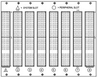 Compact PCI系統(tǒng)由一個或一個以上的Compact PCI段組成,每一個段包括1塊系統(tǒng)板(System Slot)和7塊外圍板(Peripheral Slot),板與板中心的間距為20.32mm。系統(tǒng)板為所有在段內(nèi)的板提供仲裁、時鐘分配和復(fù)位功能。系統(tǒng)板負責(zé)執(zhí)行系統(tǒng)的初始化,管理每一個本地板的IDSEL信號。在物理上,系統(tǒng)板可以插在背板上的任何位置。為了簡化問題,規(guī)范規(guī)定最左邊的槽位為系統(tǒng)板的插槽(從背板前面看),具體的位置如圖2所示。