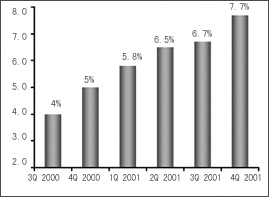 在美國的泡沫經(jīng)濟(jì)破滅、市場極度低迷的時(shí)候,歐洲又傳來第三代無線通信技術(shù)——WCDMA因產(chǎn)品、市場等諸多原因全面推遲的消息,這對本來就處于蕭條狀態(tài)的全球通信業(yè)來說,無疑雪上加霜。業(yè)內(nèi)人士在不斷地尋找和探討,究竟什么樣的需求才是目前市場的驅(qū)動力?究竟什么樣的技術(shù)才能真正體現(xiàn)市場價(jià)值呢?